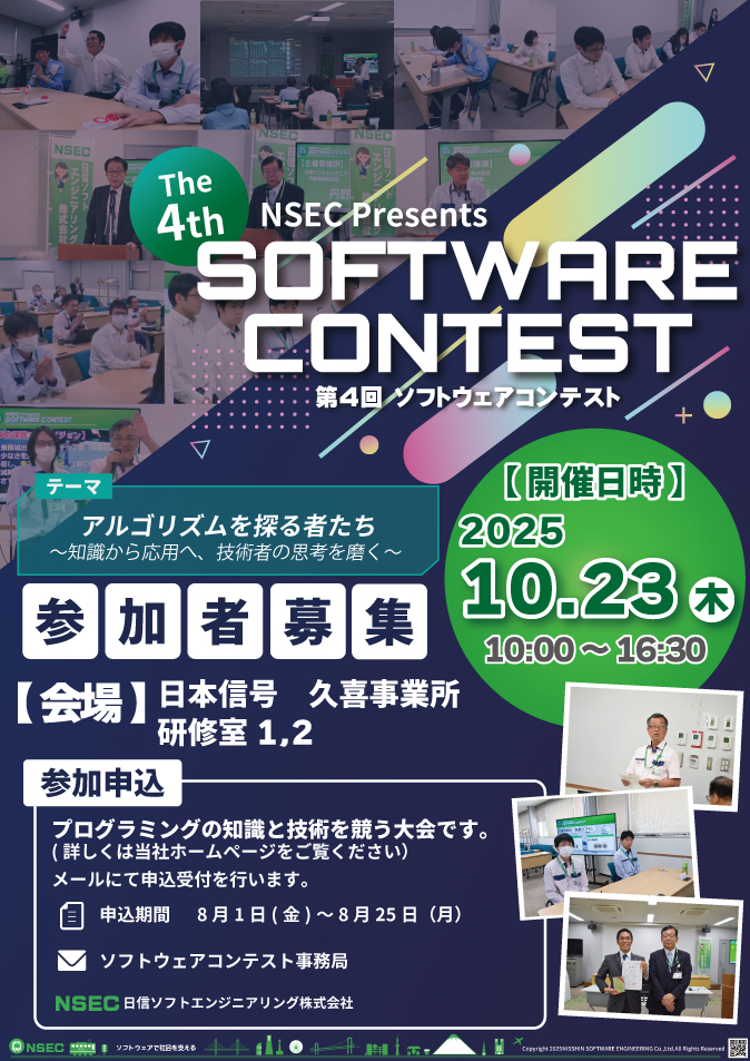 本コンテストはソフトウェアファーストの時代におけるプログラム技術者の皆様による、プログラミングの知識と技術を競うコンテストです。参加をお待ちしております。奮ってご応募ください。