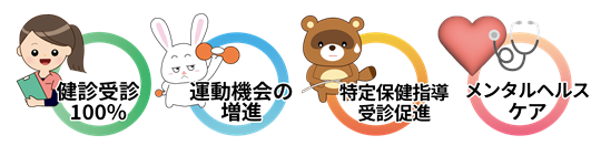 社員一人ひとりとその家族が、心身共に健康で働く環境と幸せな生活の実現に向けて、会社・社員・健康保険組合が一体となり、積極的な取り組みを推進します。
