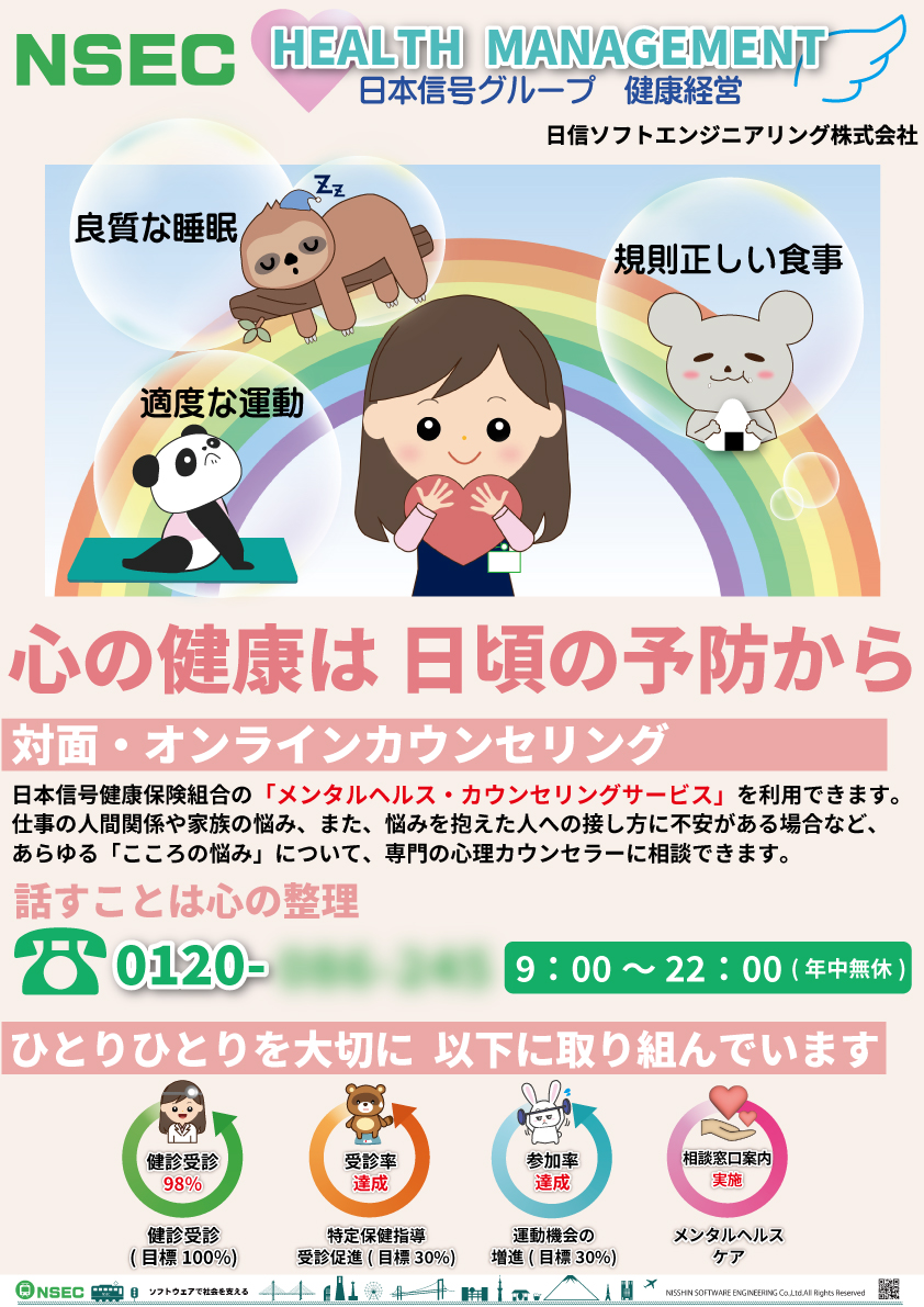 交通インフラの安全を担う日本信号グループは、「安全と信頼」という理念に基づき社会的な責任を果たし、 サスティナブル成長企業として歩み続けるために、2022年4月より健康経営への取り組みを開始いたしました。